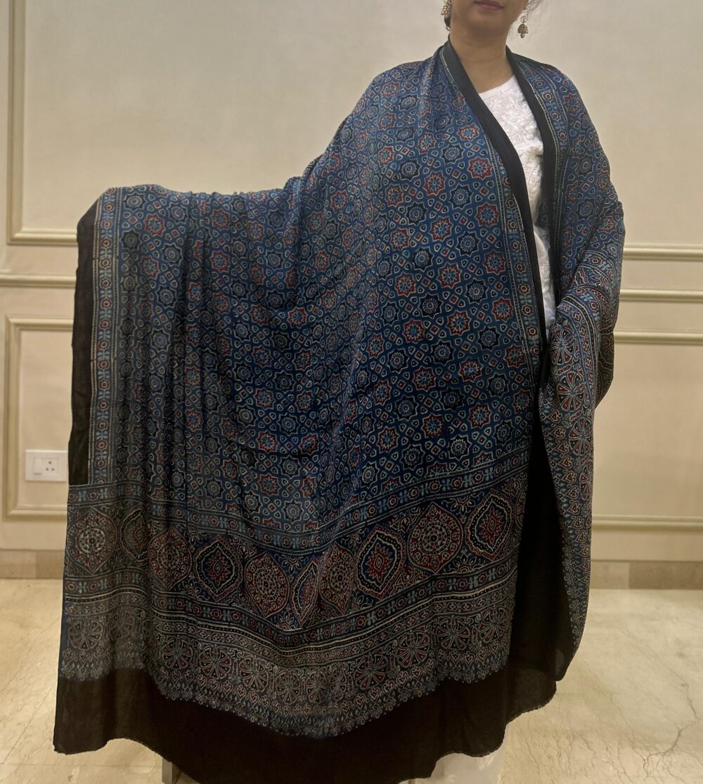 Indigo – Modal Silk Ajrakh Hand Block Dupatta