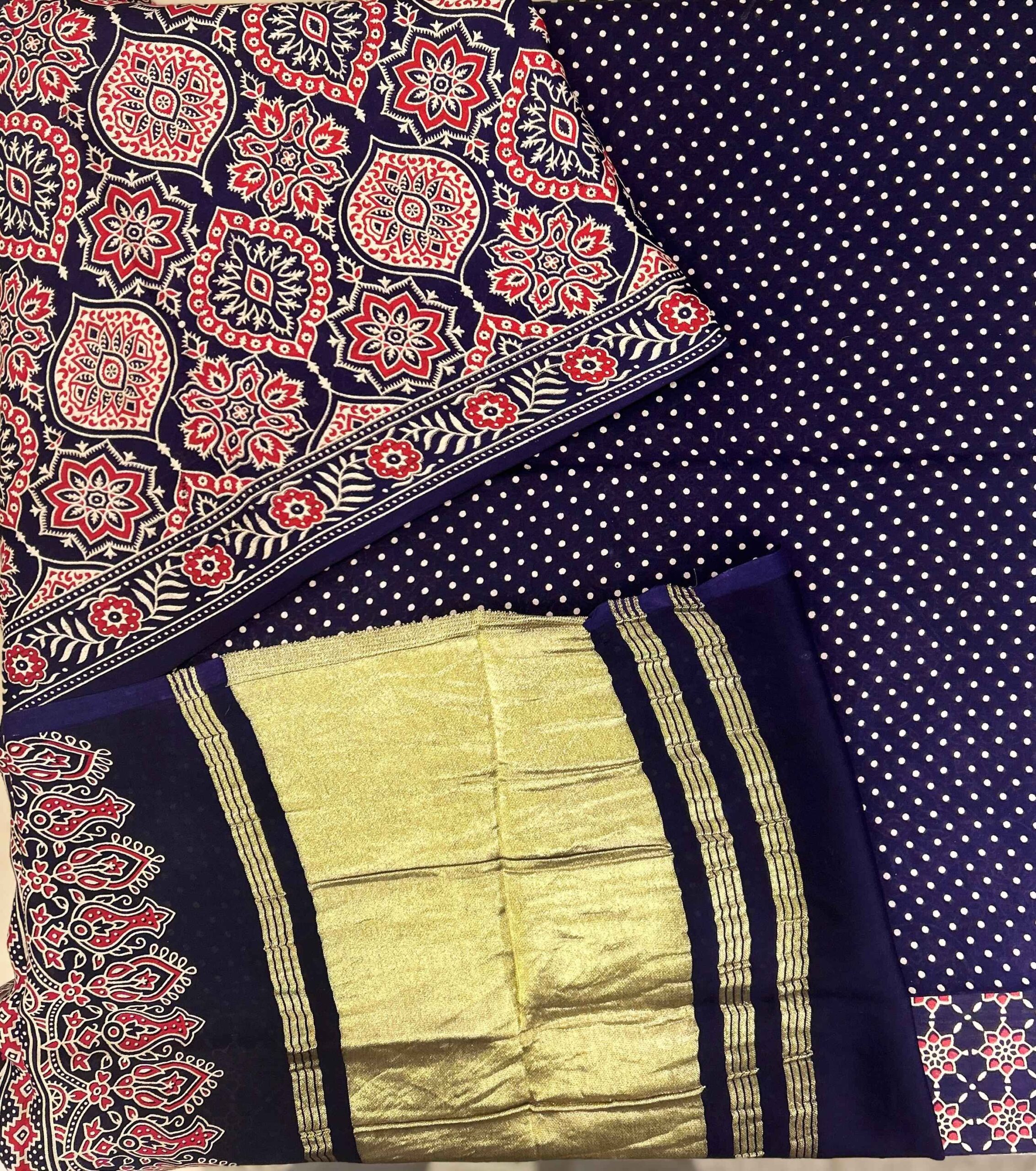 Modal Silk Ajrakh Printed Saree with Lagadi Pallu