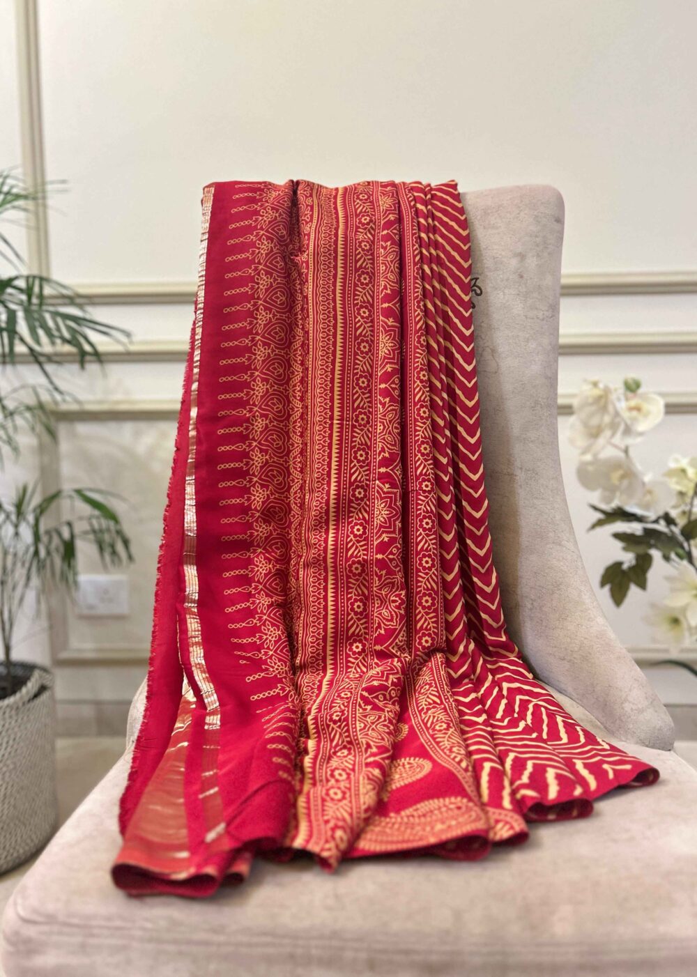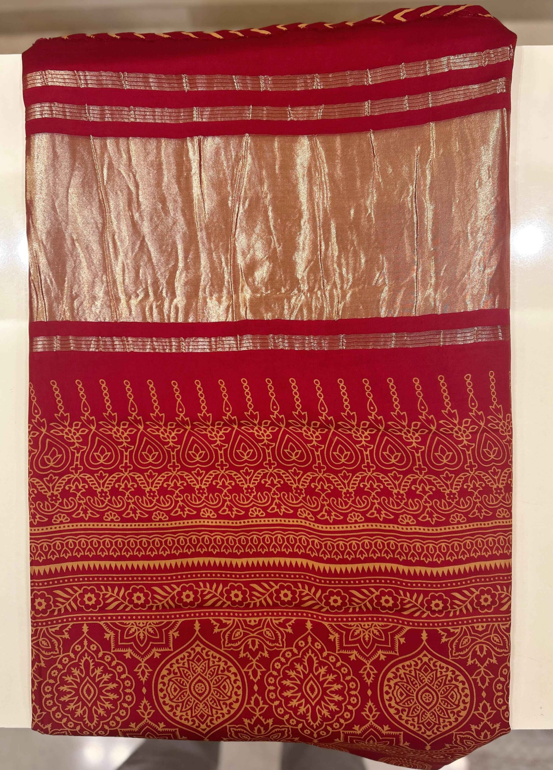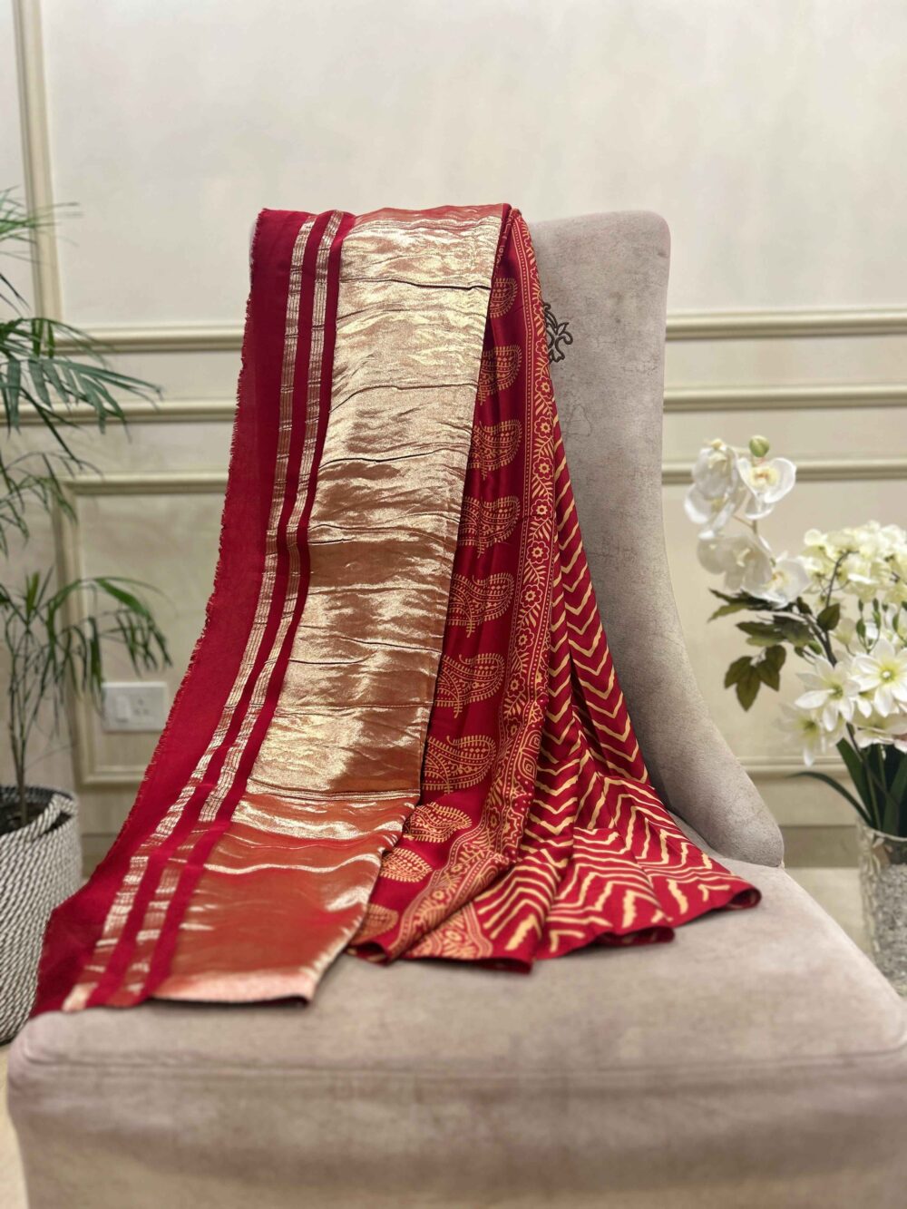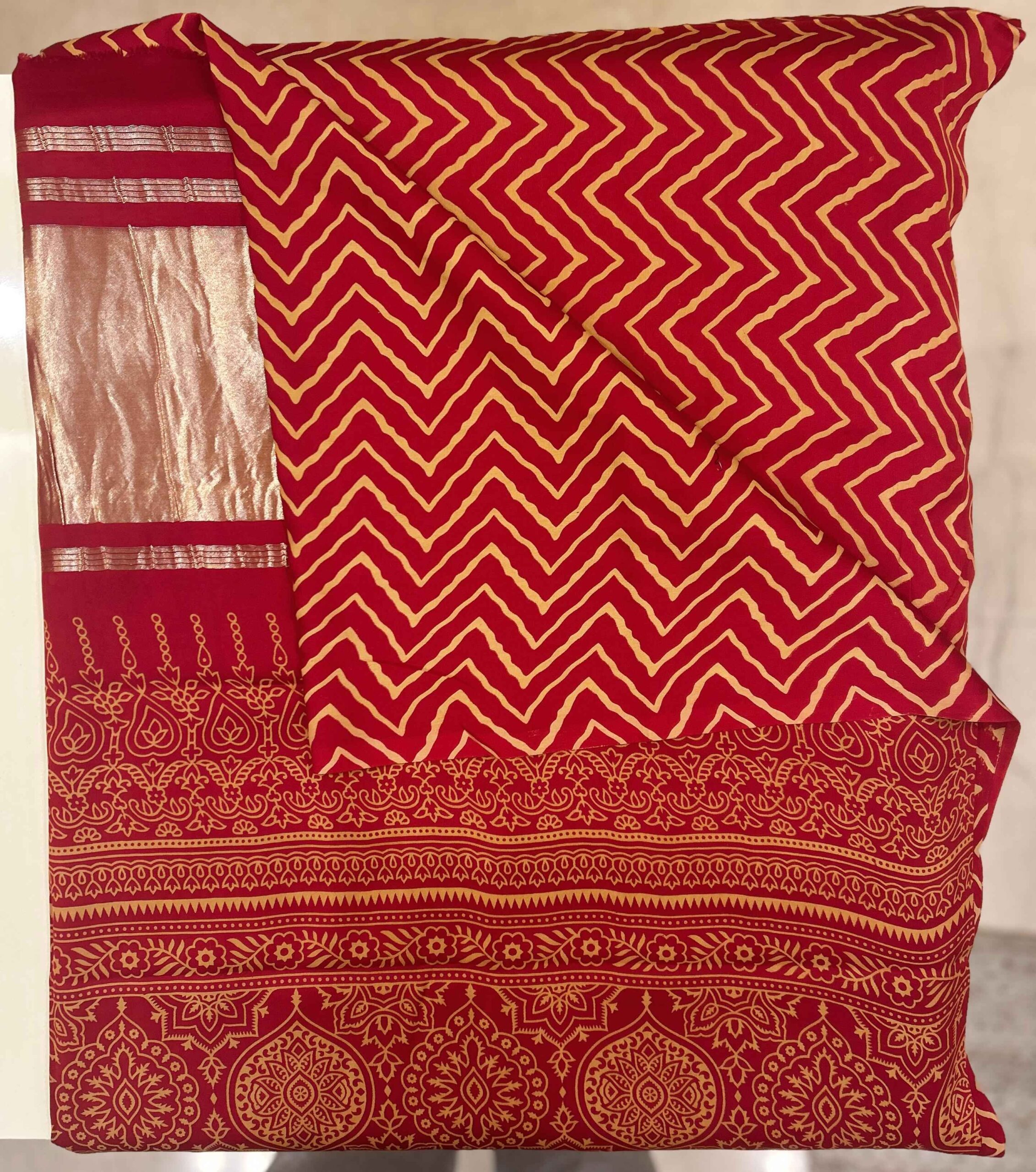 Modal Silk Lehariya Ajrakh Printed Saree with Lagadi Pallu