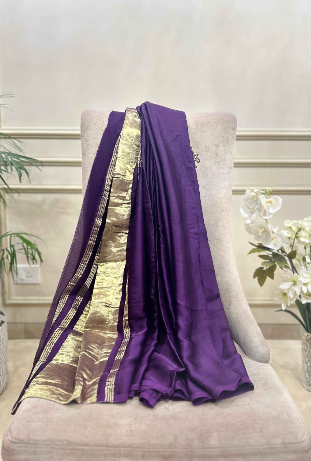 Radiate elegance and grace in this plain modal silk tissue pallu saree. You can also be creative in transforming your plain modal silk saree into beautiful anarkali, a real ethnic wear for festive occasion.